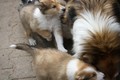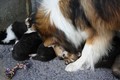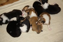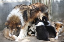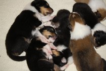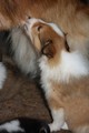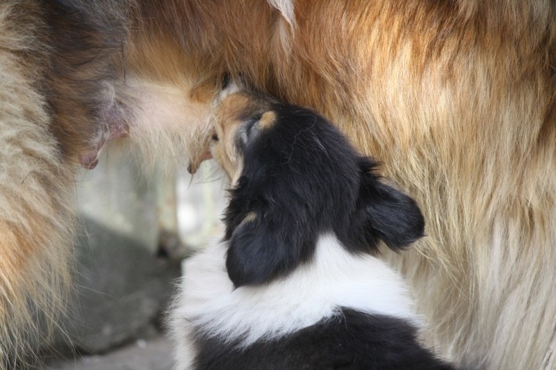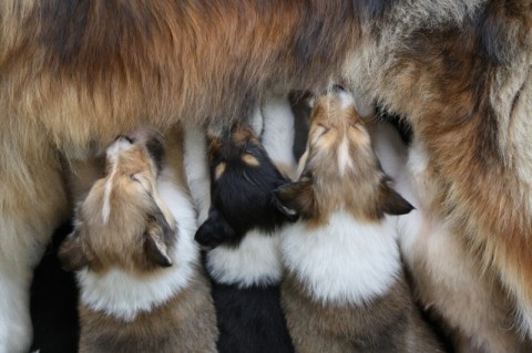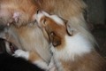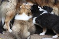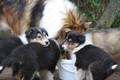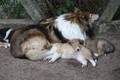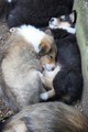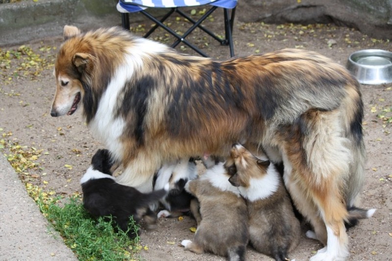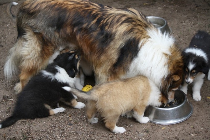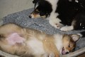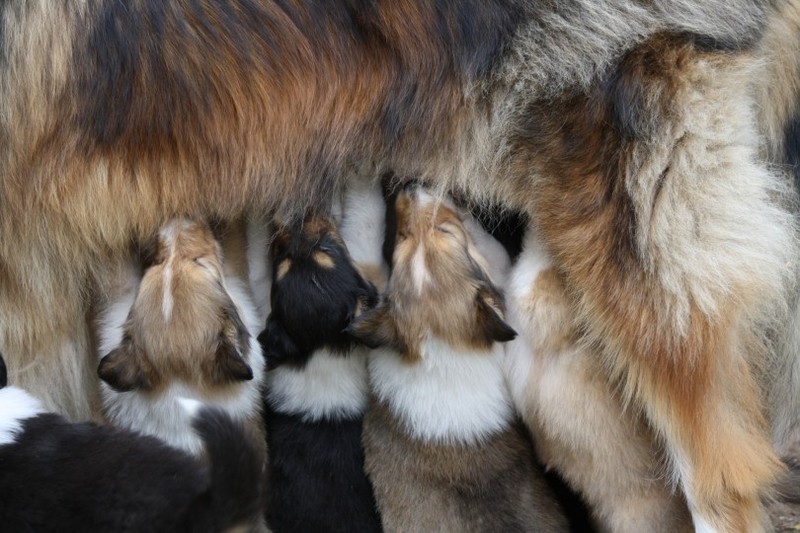 Urte ist vom Spaziergang zurück. Sie hat die Welpen auch mit 8 Wochen noch kurz saugen lassen, aber es haben gar nicht mehr alle Platz ;-)