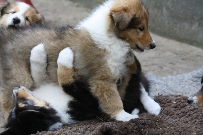 Schon länger ist wieder ein zweiter Hund geplant. Im Januar war ich zu Besuch bei den Collies von der Prignitzerflur und war dann auch ganz sicher das ich einen Welpen von Urte von der Prignitzerflur haben will. Am 22. Juni hat Urte ihre Welpen geworfen. Nachdem 2 Rüden nicht überlebt haben sind es nun 6 Hündinnen, 3 tricolour und 3 dark sable und 2 tricolour Rüden. Bei mir soll eine Hündin einziehen und ziemlich sicher eine von den dark sable.