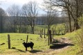 Auf der Hinfahrt hat Annouk am letzten Parkplatz vor der Autobahnabfahrt schon eine feste Erwartungshaltung auf spielerische Bespaßung. Für freies Longieren und um Buschgruppen rennen, was sie letztes Mal mit Begeisterung gemacht hat war es mir diesmal trotz der Möglichkeit sich zwischendurch in der "Linsensuppe" = Graben mit reichlich Wasserlinsen ;-) abzukühlen zu warm und v.a. zu schwül.