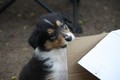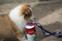 Die Büchse war auch wieder mit ihm Spiel. Inclusive Bekauen = schöne spielerische Vorübung zum Metallapport ;-)