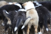 Abends waren wir mit Annouk und Collie Wenke im Wald spazieren und anschließend in der Dämmerung/bedinnenden Dunkelheit dann noch mit den Welpen, Urte und Wenke im großen Auslauf. Danach gab es für die Welpen Abendessen und nach etwas Herumspielen sind sie alle draußen eingeschlafen. Aber als es mit einem Stück Trockenpansen zu Bett ins Zimmer ging und Licht aus, da war dann ordentlich Protest angesagt.