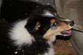 Nach einem Waldspaziergang mit Annouk, Umber und Vroni gab es dann für die Welpen im großen Auslauf Bespaßung mit einem Agilitytunnel. Urte und Wenke waren erst auch noch dabei. Die ganze Schar kreuz und quer (mit Collies geht das ohne Unfälle) und als Urte und Wenke schon aus dem Auslauf raus waren haben die Welpen alleine auch viel im Tunnel gespielt. Im Dunkeln gab es dann eine späte Mahlzeit (Dosenfleisch wurde schnell gefressen ;-)) und danach wurde im Zimmer eine Wanne mit frischen Decken zum Schlafen aufgestellt in der erst mal gespielt wurde.