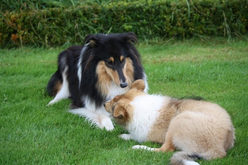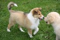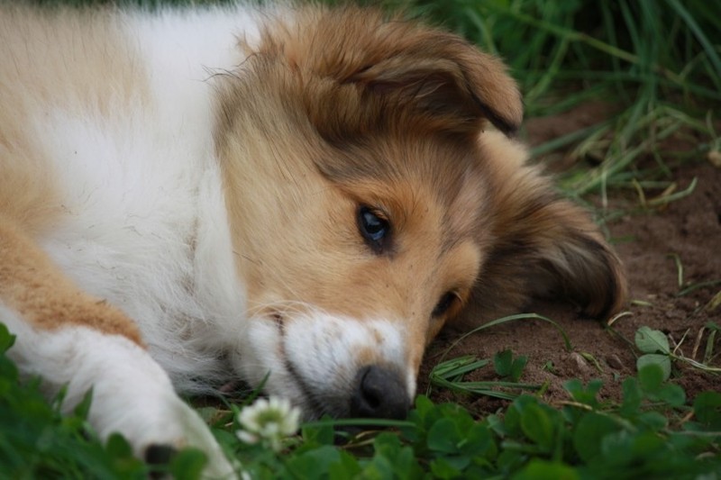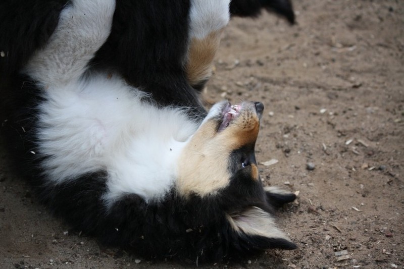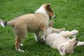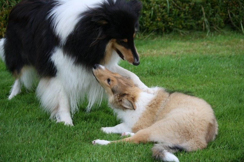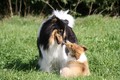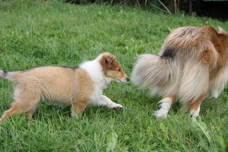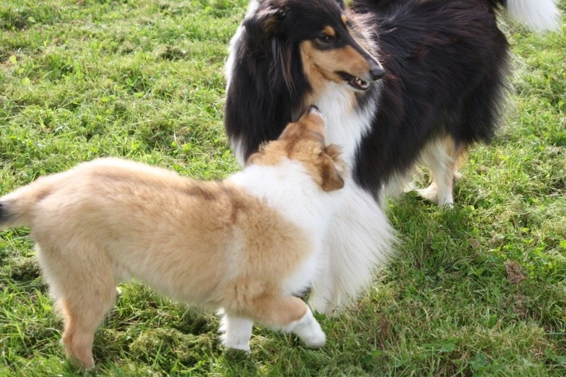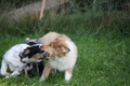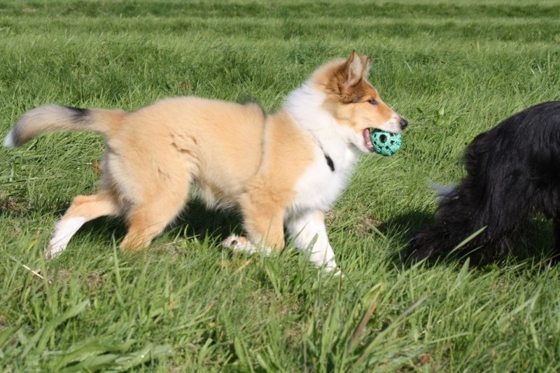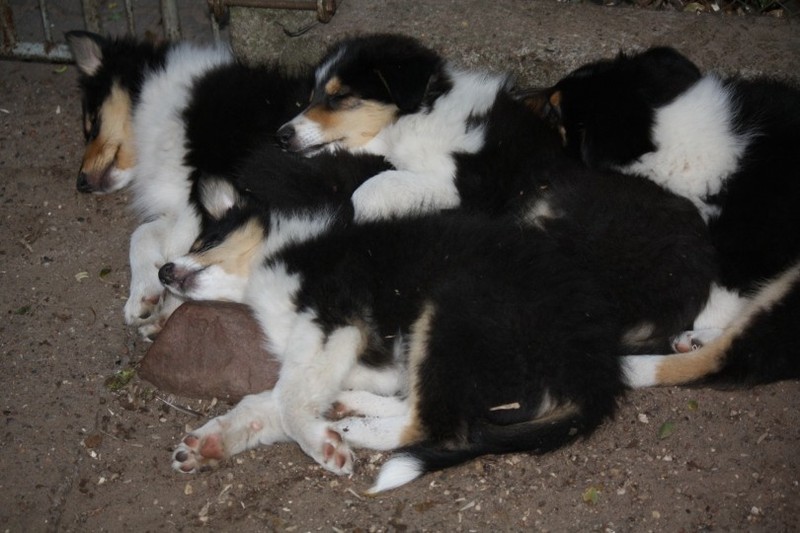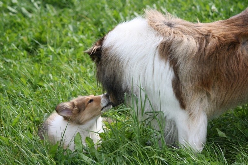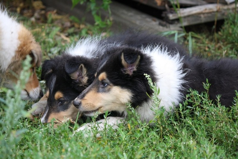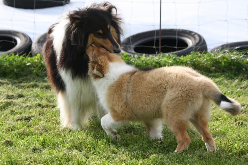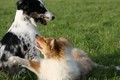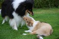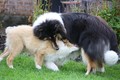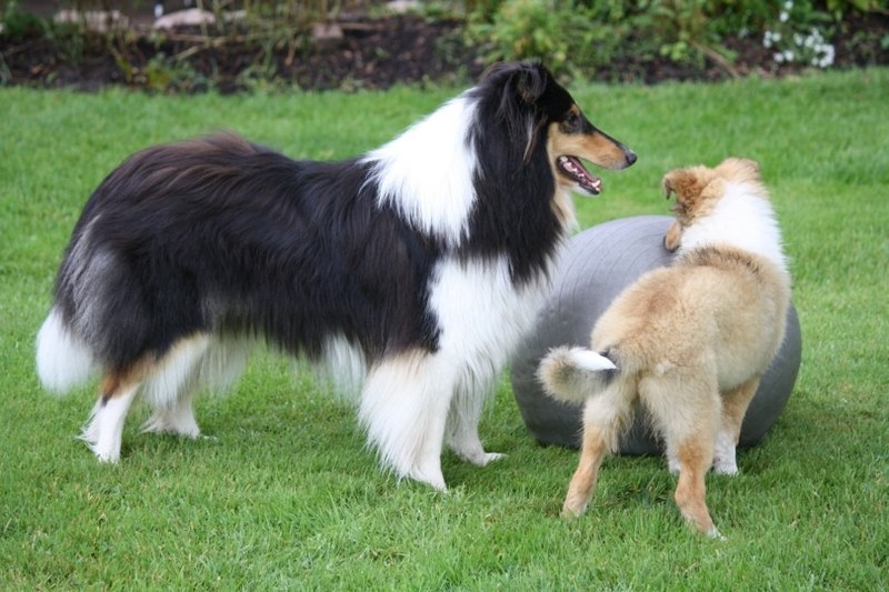 Nach einem wilden Spiel ist der kleine Collie auf der Wiese umgeplumpst und an Ort und Stelle eingeschlafen. Für eine ganz schön lange Zeit. Als Ronja wieder auf den Füßen war mußte Susan schon fast los und es gab nur noch ein kurzes Spielchen mit Ivy und sehr flüchtiges Kennenlernen von Sheltie Luca.