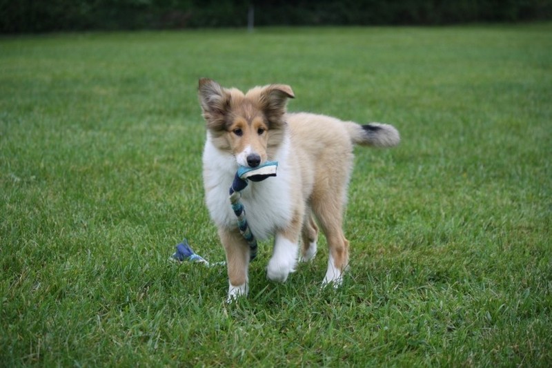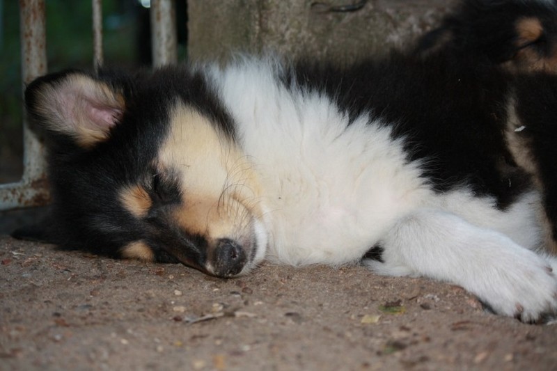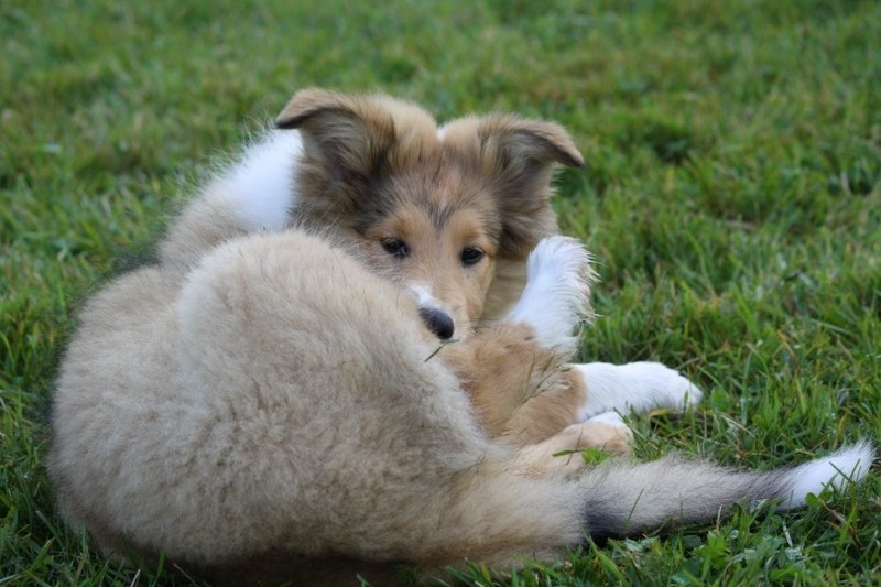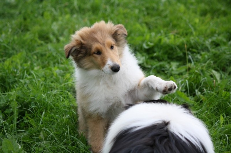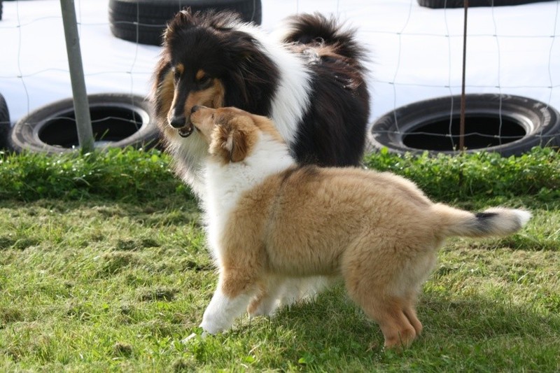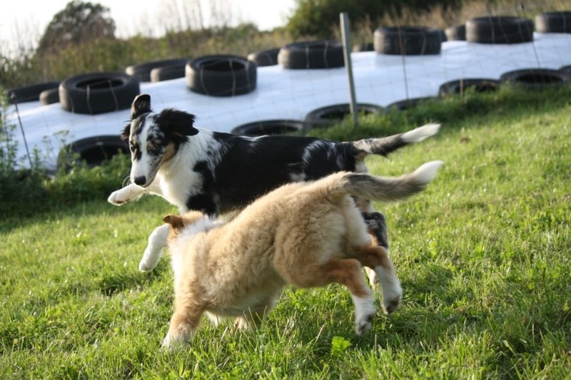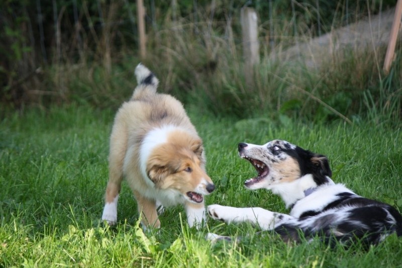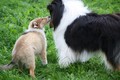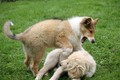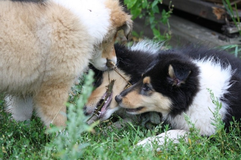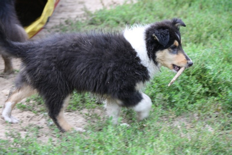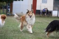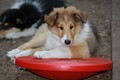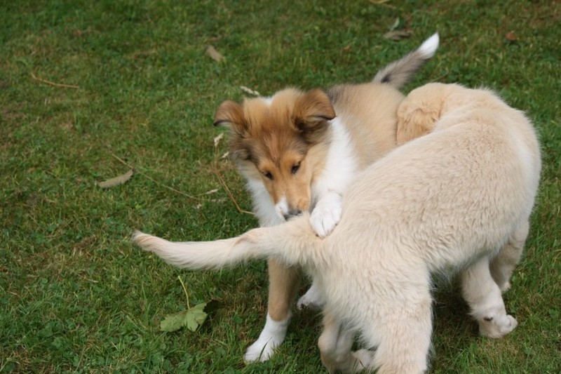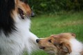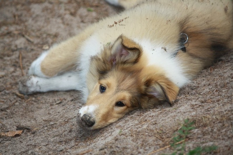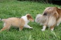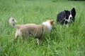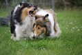 Nach einem wilden Spiel ist der kleine Collie auf der Wiese umgeplumpst und an Ort und Stelle eingeschlafen. Für eine ganz schön lange Zeit. Als Ronja wieder auf den Füßen war mußte Susan schon fast los und es gab nur noch ein kurzes Spielchen mit Ivy und sehr flüchtiges Kennenlernen von Sheltie Luca.