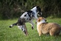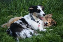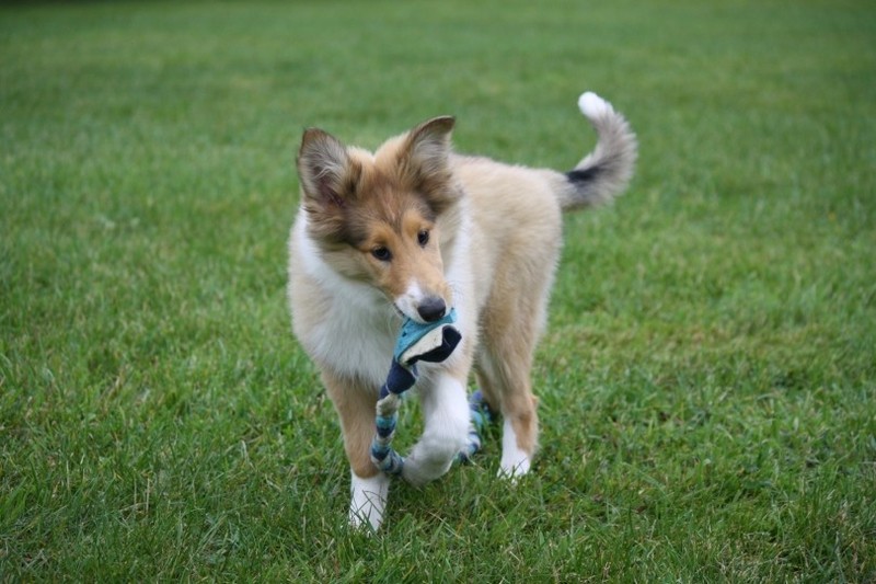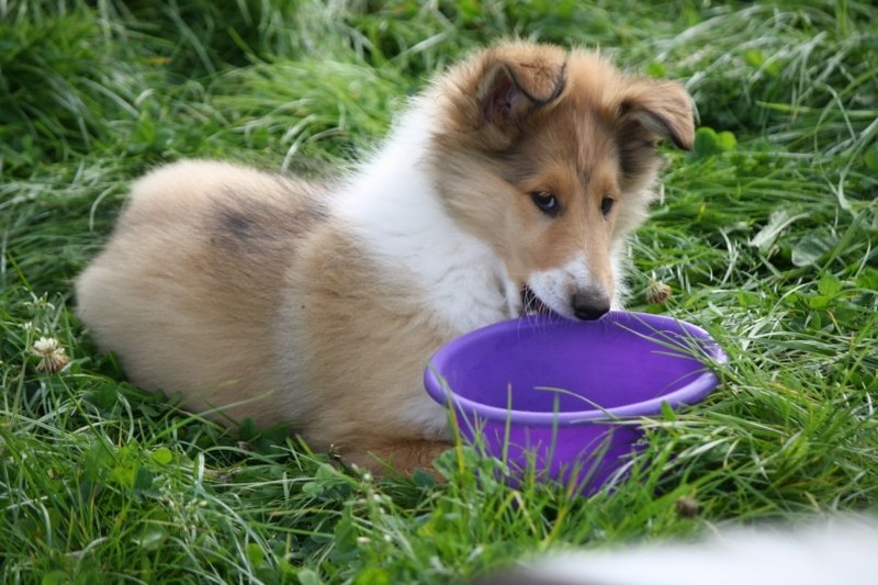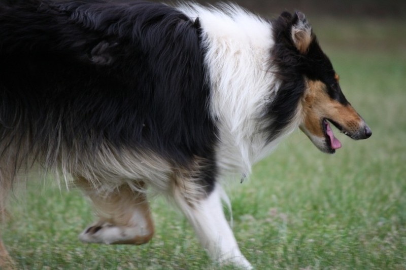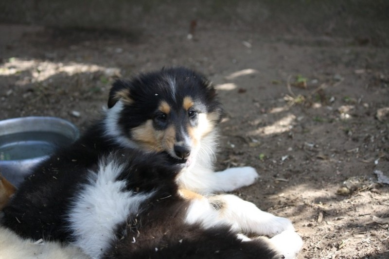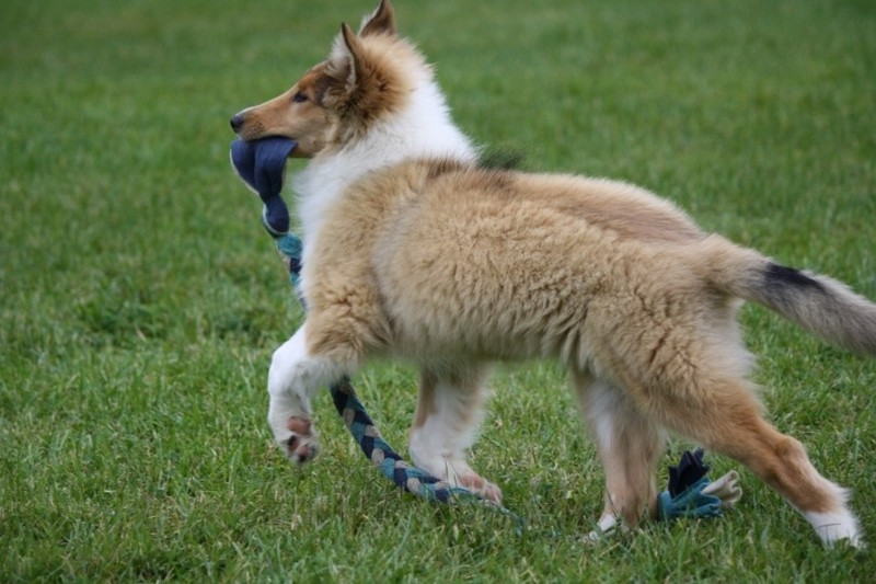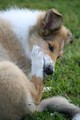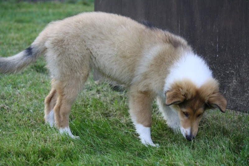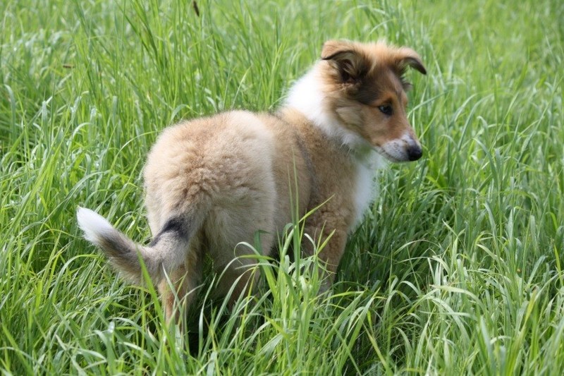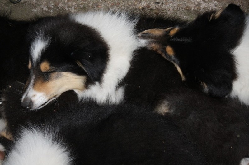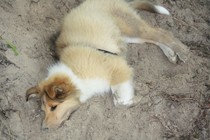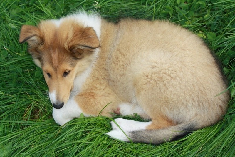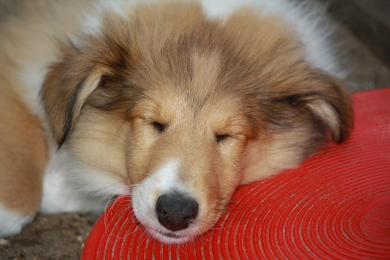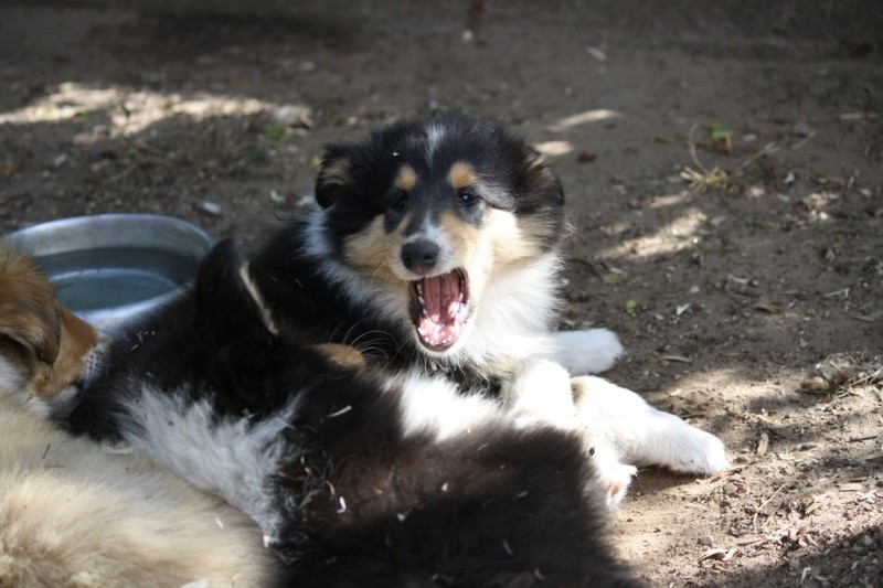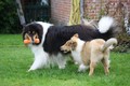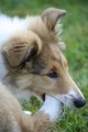 Nach einem wilden Spiel ist der kleine Collie auf der Wiese umgeplumpst und an Ort und Stelle eingeschlafen. Für eine ganz schön lange Zeit. Als Ronja wieder auf den Füßen war mußte Susan schon fast los und es gab nur noch ein kurzes Spielchen mit Ivy und sehr flüchtiges Kennenlernen von Sheltie Luca.