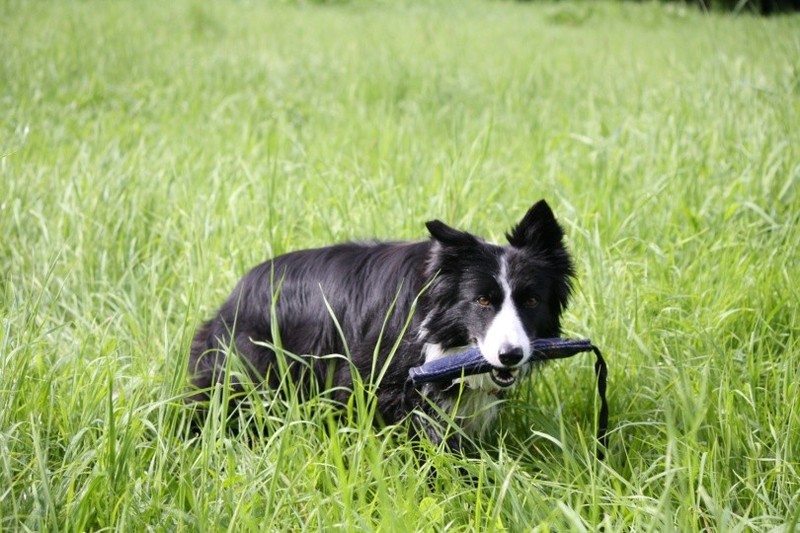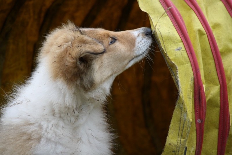 Nachmittags waren wir trailen. So süß wie Ronja das Spielkind die Geruchsgegenstände erstmal total albern aufgesammelt und zerfetzt hat ;-) Aber dann kam es ihr erstaunlich schnell in den Sinn Babette mit der leckeren Futterdose zu suchen und finden.