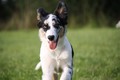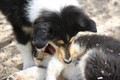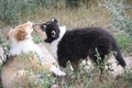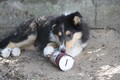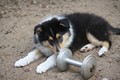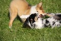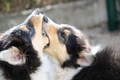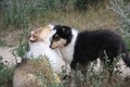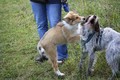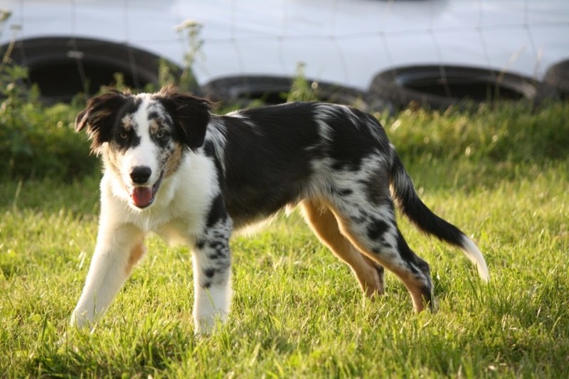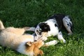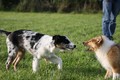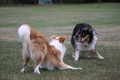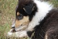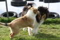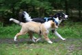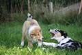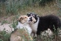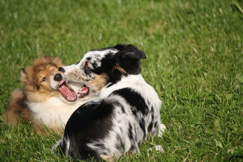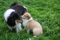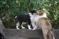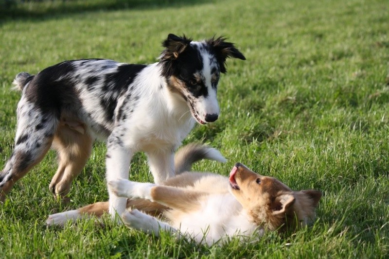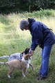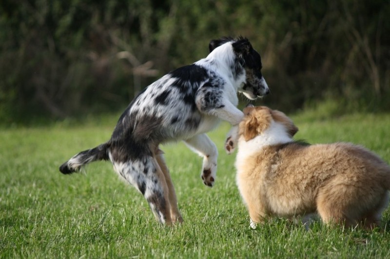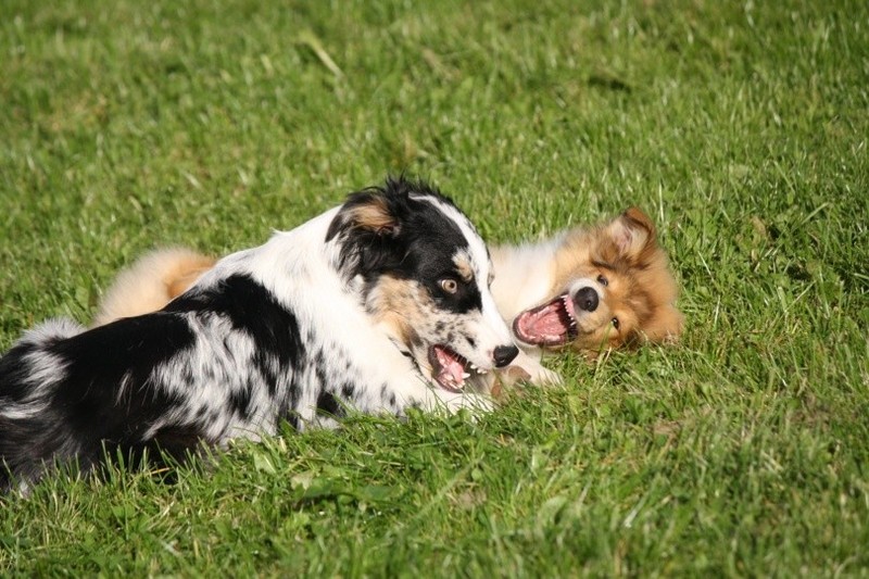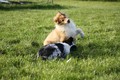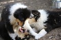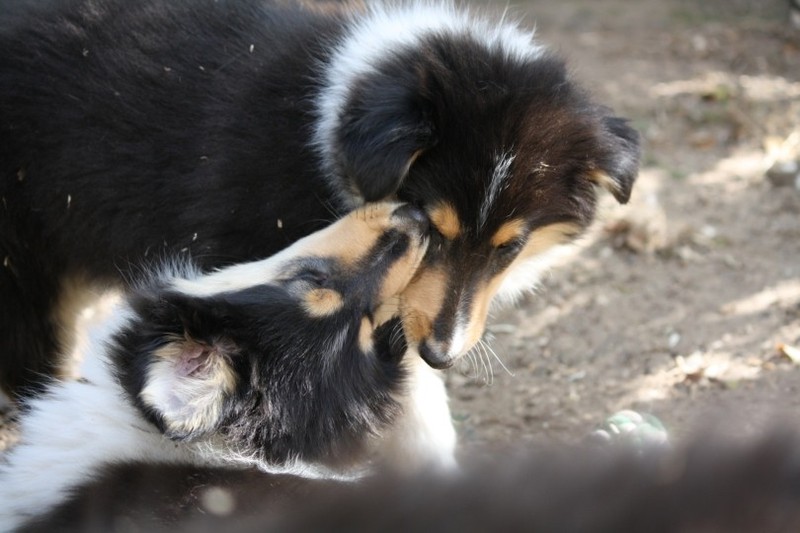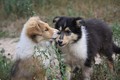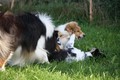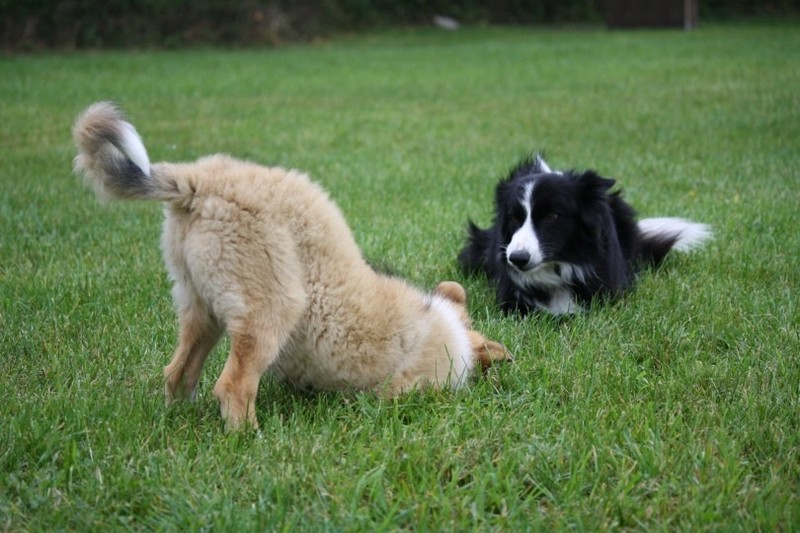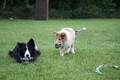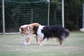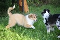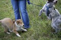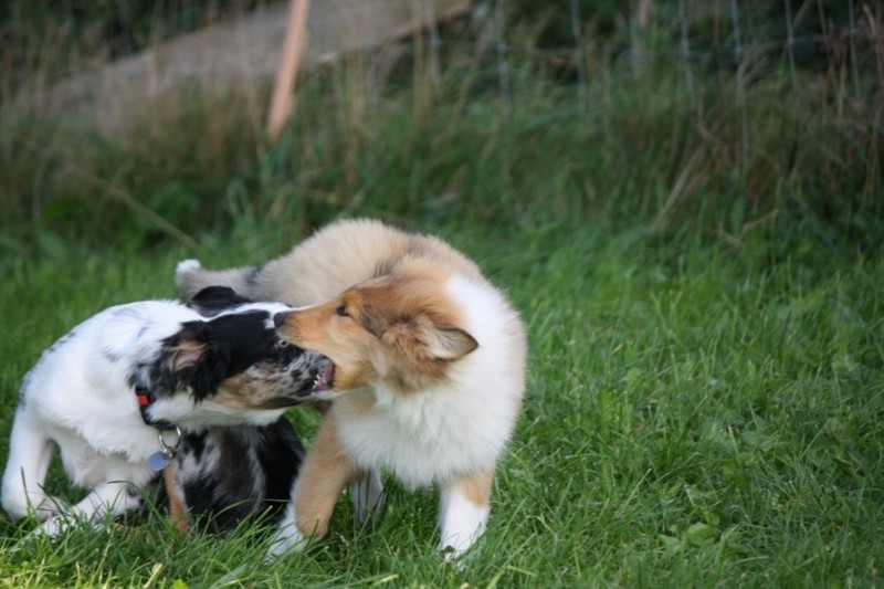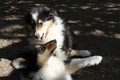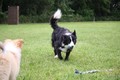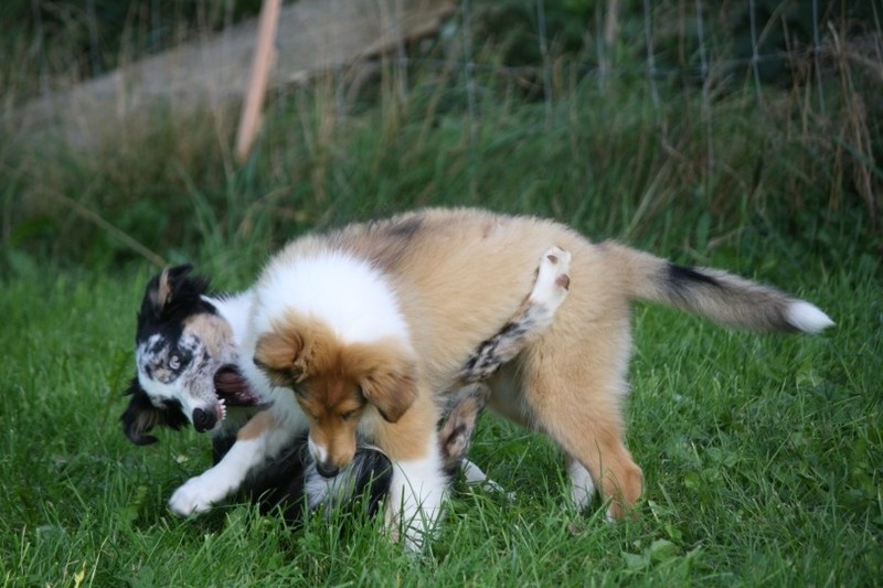 Nachmittags haben wir uns auf unserem Platz getroffen und Ronja hat mit Annetts Australian Shepherd Welpe Cooper gespielt.