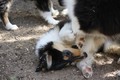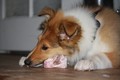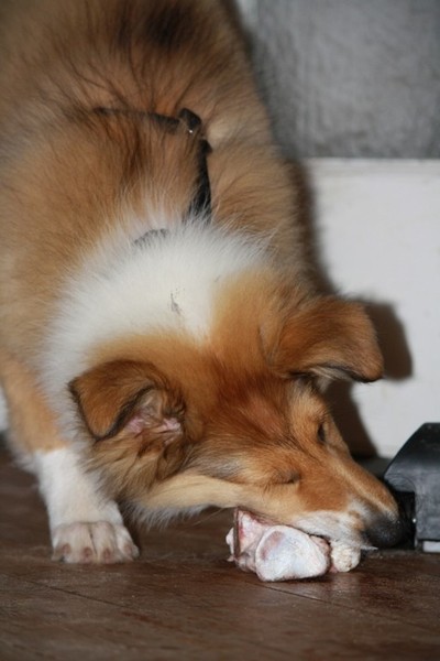Beim Fleisch vom Kalbsknochen abnagen (den Knochen hat dann aber doch wieder Annouk verspeist, der war noch zu hart)