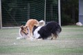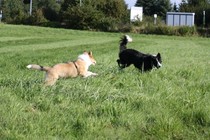 Annouks Highlight war Hunde auf dem Sportplatz nebenan toben lassen. Während Vroni und Wenke mit Annouks Spieli gespielt haben und ich fotografiert habe, hat Annouk sich am Ballspiel mit anderen Hunden beteiligt, indem sie eifrig umkreist und hin und wieder auch den Ball erwischt hat.