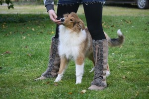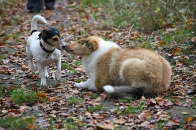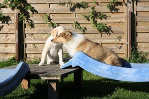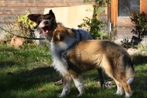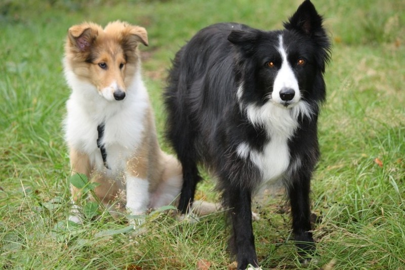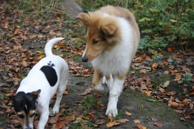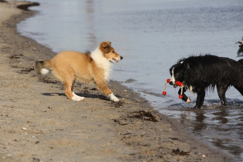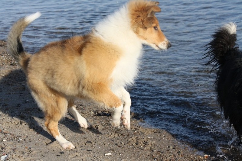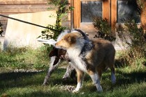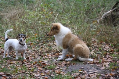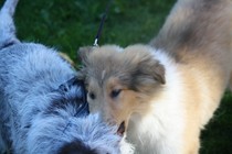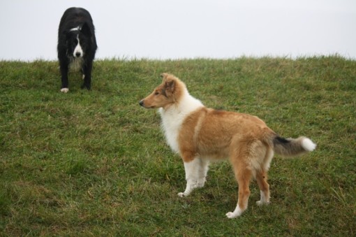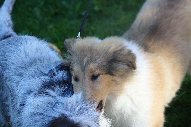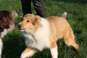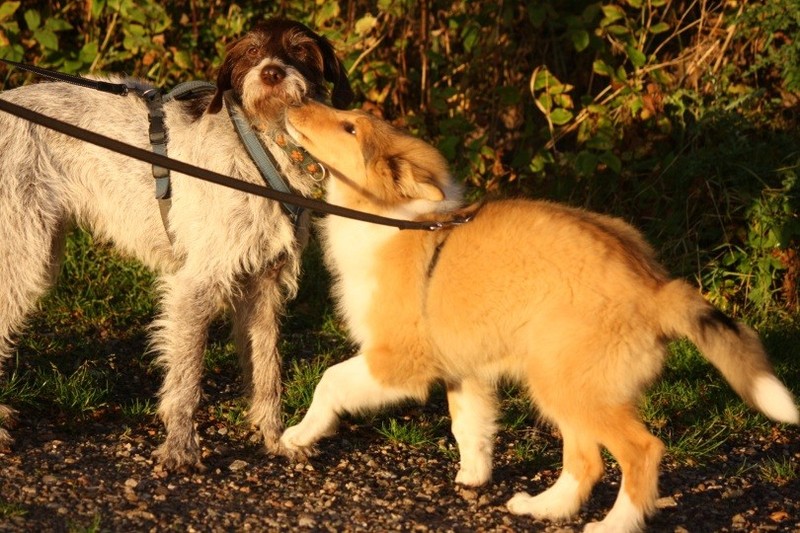 Fotos: Ronja (16 Wochen alt) trifft hier zum ersten Mal Lotta. Erst mal ganz kleiner Collie (gar nicht mehr so einfach ;-)), dann größer und dann frech geworden (von frech sein hab ich allerdings kein Foto mehr hinbekommen)