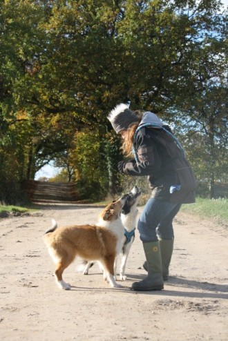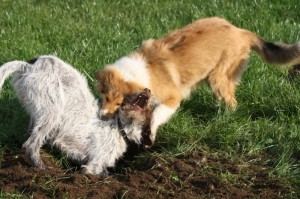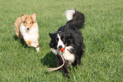 Danach sind wir zu Katha gefahren und haben zuerst einen Spaziergang mit den Border Collies gemacht. Dann ist Babette dazugestoßen und wir haben noch einen kurzen Gang mit Ronja gemacht. D.h. viel gegangen sind wir dabei nicht. Ronja hat mit Stine gespielt. Dann habe ich Hunde auf dem Feld fotografiert.