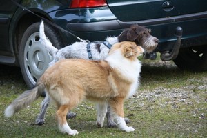 Abends waren wir ohne hetzen zu müssen bei der Welpengruppe. Vorher noch mit Babette und Stine spazieren und Fotos in der inzwischen rausgekommenen Sonne machen.