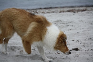 Nachmittags haben wir uns wieder zum Trailen getroffen. Ronja hat das präsentierte erste Geruchsstück wieder zum Spielen genommen. Aber als sie grad anfangen wollte damit herum zu albern ist ihr eindeutig plötzlich was eingefallen. Sie hat den Gegenstand fallen lassen und ist ihrer Nase gefolgt. Die Augen hat sie auch gut mit eingesetzt und außer Nasensuche auch hinter markanten Bäumen nachgeschaut - Wahnsinn was sie alles vom letzten Mal behalten hat! :-)