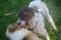 Video: Ronja (16 Wochen alt) trifft Mix Rufus und Westie Rocky.