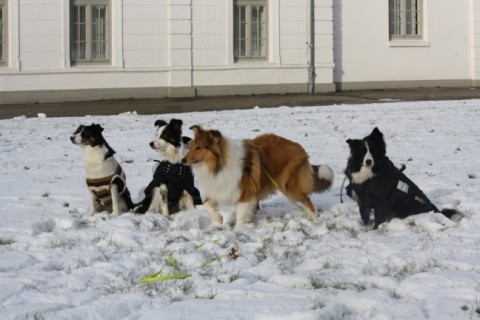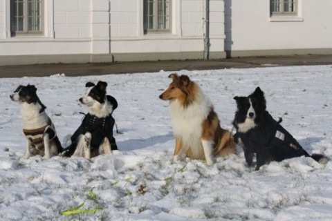 Am 12. Januar waren wir alle gemeinsam spazieren, eine erste Runde auch mit allen Hunden. Katha hatte die Idee zu obigem Gruppenfoto. Das hat schon eine Weile gedauert bis alle positioniert waren ;-)