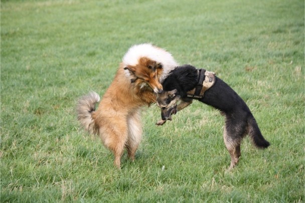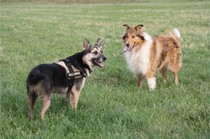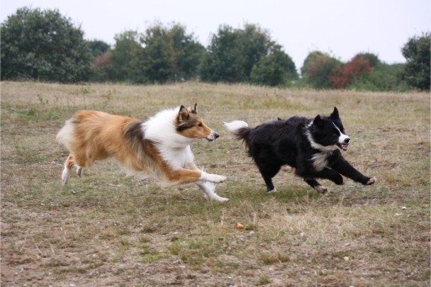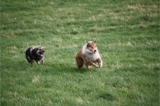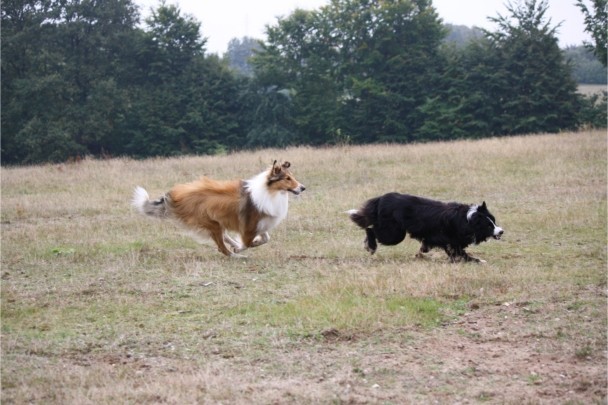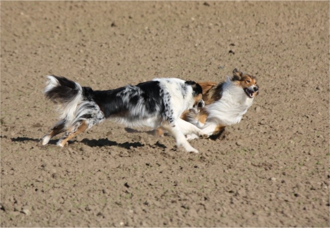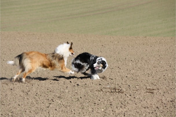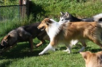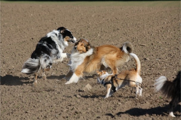 Was gibt es Schöneres als einen freien Tag mit Sonnenschein (und ab und zu ein paar Wolken) und ausgiebigem Spielen? Nach der Morgenrunde waren wir auf dem Hundeplatz. Dort war an diesem Sonntag keine reguläre Junghundegruppe sondern Geburtstagsfrühstück und die Junghunde durften dann so noch auf dem Platz toben und Ronja und Laika durften dazu.