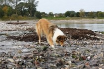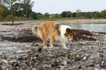 Fotos: 6. Oktober am Strand (Was Ronja da auf dem Stein erschnüffelt sind übrigens keine Leckerlies) (zur größeren Ansicht/Diashow Bild anklicken).