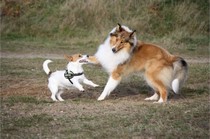 Fotos: In der Mittagspause am 31. Oktober "Spielkind" Ronja beim Spielen mit Puck und die "alte Hexe" Annouk beim kompletten Vergessen der fußhemmenden Wirkung eines Maulkorbs ;-) (zur größeren Ansicht/Diashow Bild anklicken).