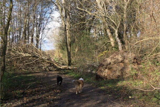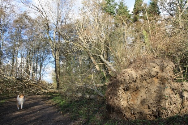 Fotos: 5. November, Mittagspause, Eiderwanderweg mit Spuren vom "Christian". Auf dem 2. Foto ist jetzt viel zu viel blauer Himmel, da war vorher Wald. (zur größeren Ansicht/Diashow Bild anklicken).