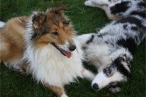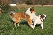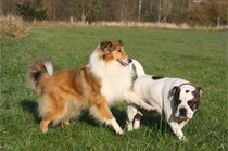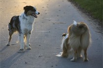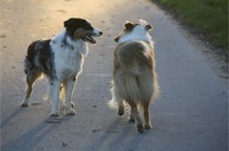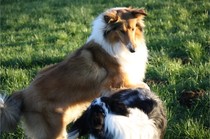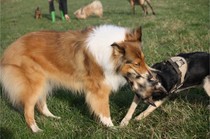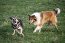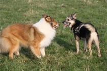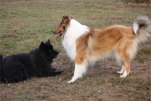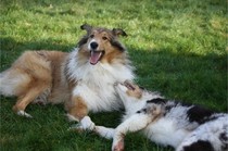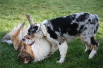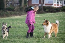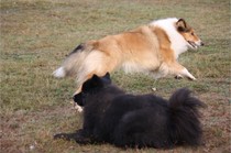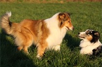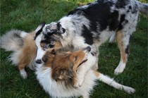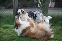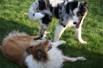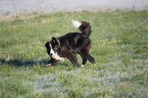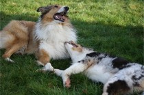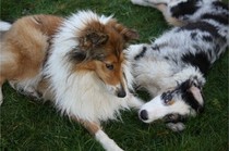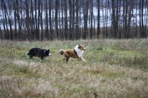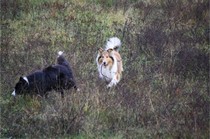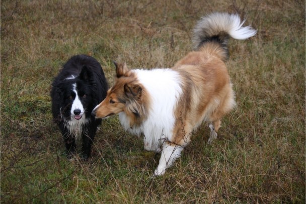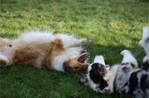 Da wir Samstags zur Zeit ja mit Babette spazieren und dort nachher fährten sind wir stattdessen Sonntags auf dem Hundeplatz. Mit Ronja mache ich dann bei den Junghunden Training mit und sie konnte außerdem schön mit Bärbels Nachwuchs, dem Aussie Dexter spielen.