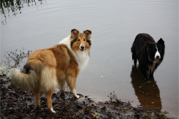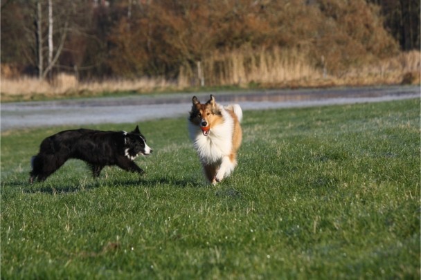 Fotos: auf dem Rückweg füllte sich die Eiderwiese mit Leben. Birte und Sandra mit ihren Hunden Mali Ronja (5. und 6. Foto), Barney (7. Foto), Lisa (8. Foto), Archie (9. Foto) und Puk (u.a. 10. Foto) und außerdem Ronjas neue Freundin Silja. Das gab ein Gerenne und Ballgejage, wobei die Annouk in ihrem Element war und sich dann auch etwas übernommen hatte (zur größeren Ansicht/Diashow Bild anklicken).