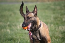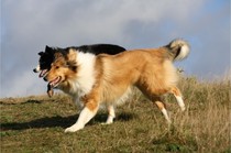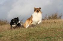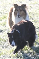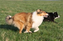 Im November hatten wir ein paar Urlaubstage und wir haben die Chance genutzt 2 mal zum Agi Training bei Katharina zu fahren. Ronja hat da Spaß dran und nachdem sie den Hunden die vor ihr dran waren gut zugeschaut hatte ist sie diesmal auch sofort über die Hürden gesprungen und nicht drumrum gelaufen :-) Die Kontaktzonengeräte A-Wand und Brücke hat sie auch erstmals kennengelernt. Beim Aufbauen lief sie schon eifrig über die noch auf dem Boden liegenden Geräte, denn etwas Neues muß eine neugierige Ronja ja sofort testen. Sie war dann auch von sich aus schon heiß darauf die aufgebauten Geräte auszuprobieren, schließlich hatte sie ja bei den Hunden die zuerst den Parcours gelaufen sind zugeschaut ;-) Locken war überhaupt nicht nötig. Am Abgang der A-Wand hab ich sie mit Körpersprache gestoppt. Vielleicht etwas stark und wahrscheinlich auch weil wir in letzter Zeit wieder öfters Füße auf Targets stellen und rückwärts gehen geclickert hatten lief sie nach der ersten Futterbelohnung die A-Wand immer wieder ein Stück rückwärts hoch :-) Beim zweiten Mal Agi-Training war statt Wand und Brücke die Wippe aufgebaut. Da war sie wieder zu schnell oben und weil diese Wippe schneller kippt als die beim Partnerlauf in Nübbel war sie erstmal auch zu schnell wieder unten. Dann ist sie die nächsten Male vorsichtshalber verfrüht abgesprungen, aber mit Kathas Abkipphilfe haben wir das auch schnell wieder gut hinbekommen. Beim zweiten Training waren auch Annett und Cooper dabei, die seit kurzem regelmäßig dorthin gehen, und Ronja und Cooper haben vor und nach dem Training ordentlich in der Reithalle getobt.