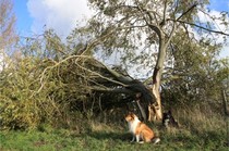 Außerdem sind wir an einem freien Tag auch das erste Mal mit Auto und Fahrrad auf dem Fahrradträger zu Feldwegen wo die Hunde gleich frei laufen können gefahren. Weil das so schön entspannter ist als von zu Hause aus zu radeln haben wir das an den Wochenenden wiederholt. Wenn man Sonntag morgens rechtzeitig loskommt ist auch der Eiderwanderweg von zu Hause aus schön zum Radeln, aber am 10. November mußten wir noch über so einige Bäume die vom "Christian" umgehauen wurden klettern.