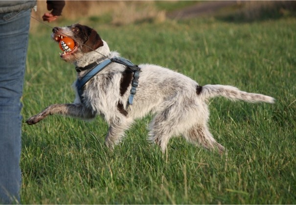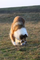 In der dunklen Jahreszeit kann man ja draußen nur begrenzt etwas anfangen. Deshalb gibt es abends oft auch Training in der Wohnung. Für Muskulatur und Balance turnt Ronja regelmäßig auf dem Gymnastikball. D.h. Ronja tut es natürlich für Futter ;-) Außerdem hatten wir Teile aus dem Obedience Training und Gymnastricks im Programm.