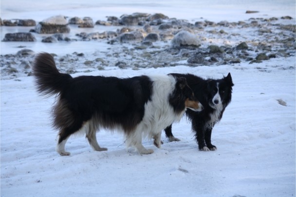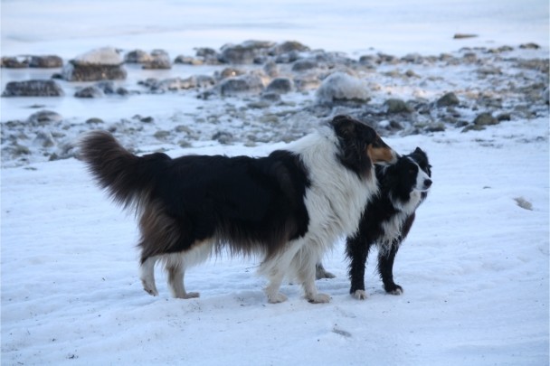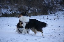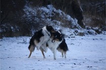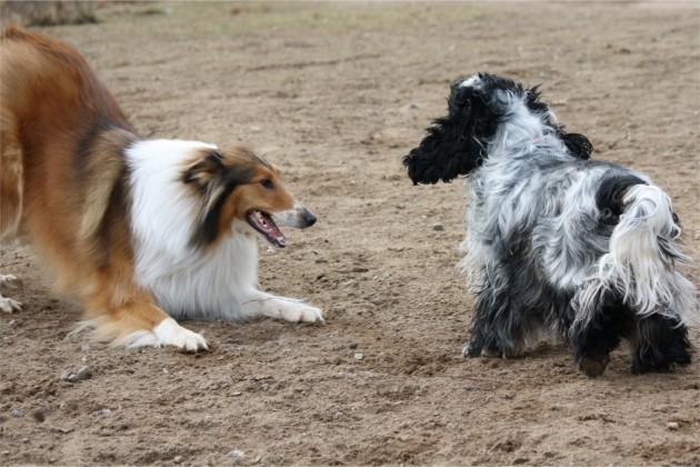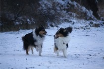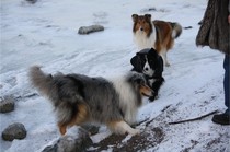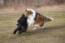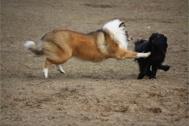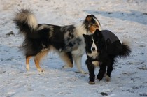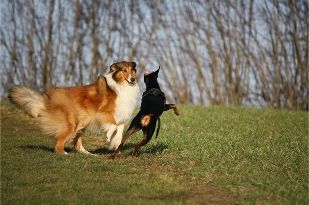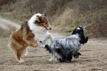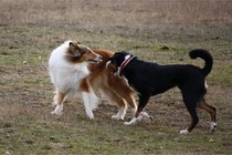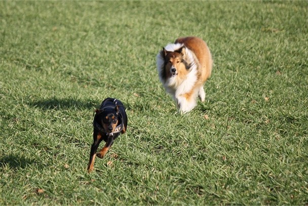 Und zum Nachmittagspaziergang hatte Annette dann neben Pico noch einen Pensionsgast dabei. Eine Pinscherhündin, über die Ronja sich sehr gefreut hat ;-) (zur größeren Ansicht/Diashow Bild anklicken).