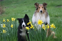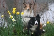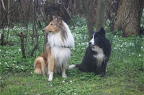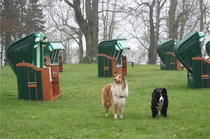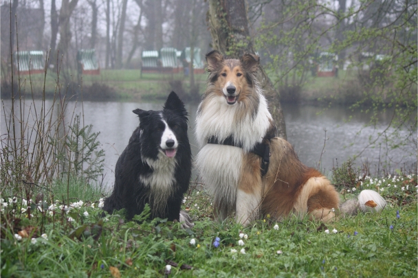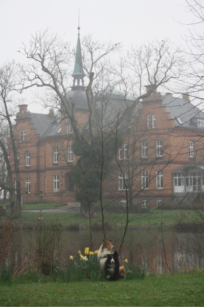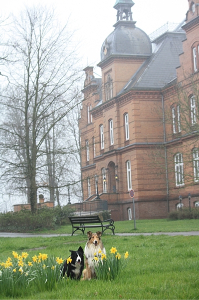 Beim Hallentraining war auch Vera mit Kimmi und Sheltie Gavin dabei. Da wir aber nicht alleine in der Halle waren, mußten Ronja und Gavin das Spielen nach dem Training nach draußen in den Regen verlegen. Anschließend hat Annouk mich überzeugt, das wir noch etwas weiter gehen. Bei dem Wetter war es beim Schloß Schönhagen schön leer, und Ronja und Annouk mußten patschnaß vor Narzissen posieren. Zur Bespaßung gab es aber dann noch ein fröhliches um Strandkörbe rennen.