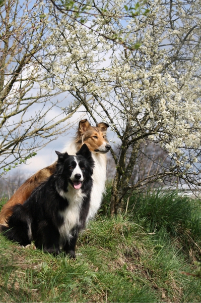 Auf dem Hundeplatz haben wir dann nur Holger angetroffen. Zum Dogdance hatte Ronja wieder wenig Lust und ich war etwas frustriert, weil ich doch das lange Osterwochenende als Haupttrainingszeit der neuen Choreo eingeplant und mir das anders vorgestellt hatte. Aber dann eben Ummeldung auf Funklasse und gucken was bis dahin geht... und an Ostern dann noch ein paar Fotos vor blühenden Bäumen und