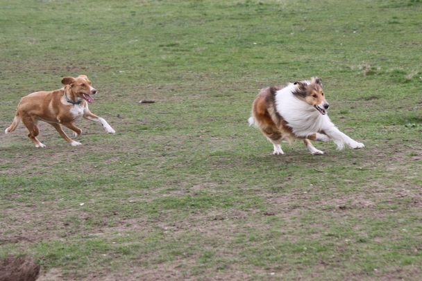 Fotos: Samstags (5. April) im Hundefreilaufgebiet, vor zartem Frühlingsgrün