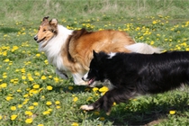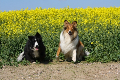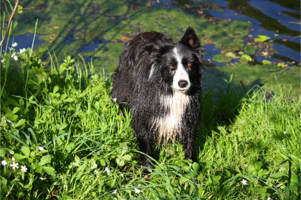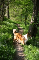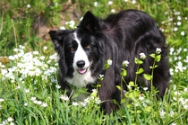 Sonntagspaziergänge am 27. April. Morgens hatte ich eine Fährte am Waldrand gelegt und den ganzen Spaziergang war ich von diesem Platz begeistert. Als Ronja dann anfing zu suchen, zuckte sie bei jedem Schritt weiter zurück und verließ die Fährte. Nochmal Ansatz und das Gleiche. Also hab ich mal genauer inspiziert was los ist: auf fast jedem Stück Fährtenwurst saß eine Ameise. Beim Legen war keine einzige zu sehen gewesen. Und der bekloppte Border hat dann die Fährte samt Ameisen gefuttert :-) Nachmittags habe ich Ronja dann nach dem Spaziergang noch ein paar harmlose Schritte in die Wiese gelegt. Denn eigentlich ist unser derzeitiges Lernziel beim Fährten: positive Verknüpfung von verschiedensten Fährtenleitgerüchen mit Futter. Mit Ameisensäure ist dieses Lernziel aber stark verfehlt ;-)