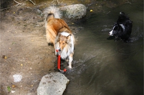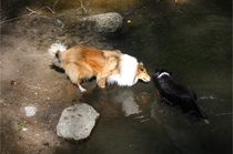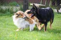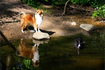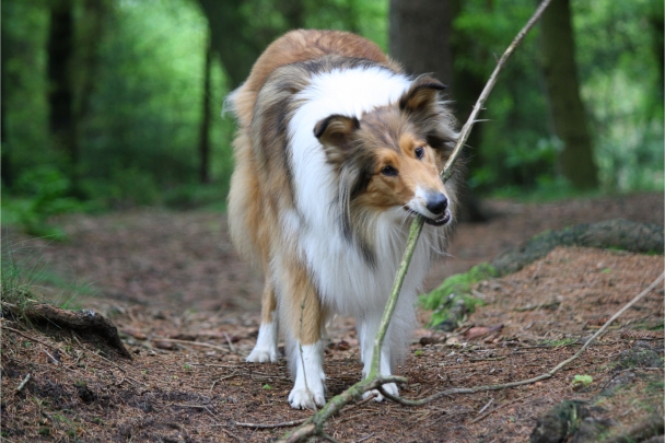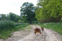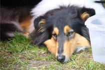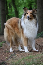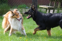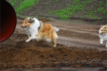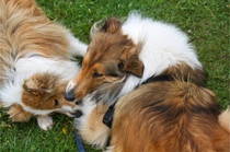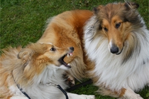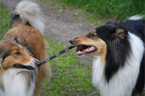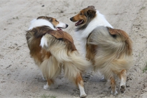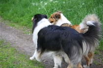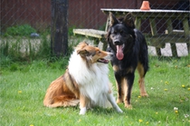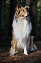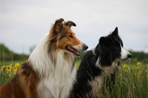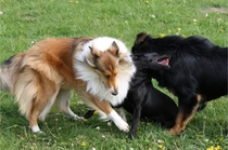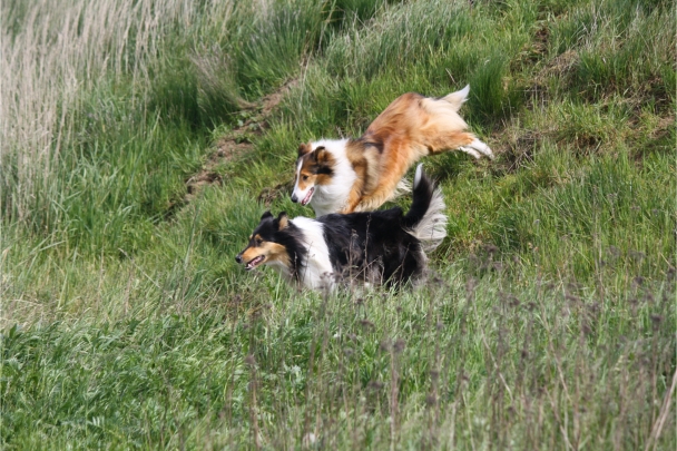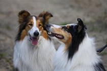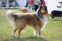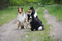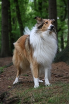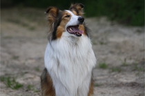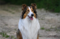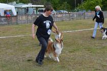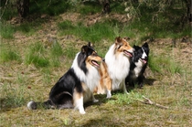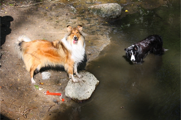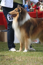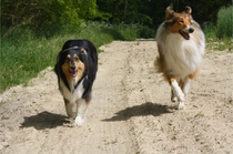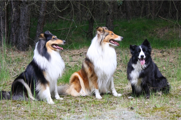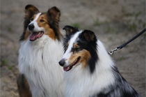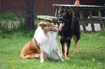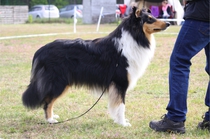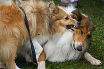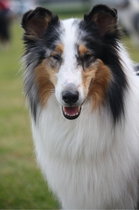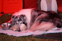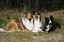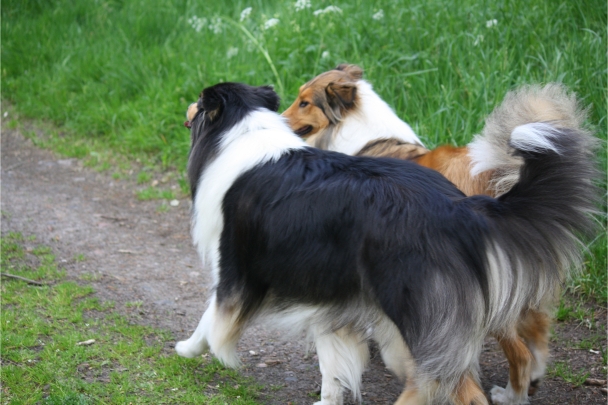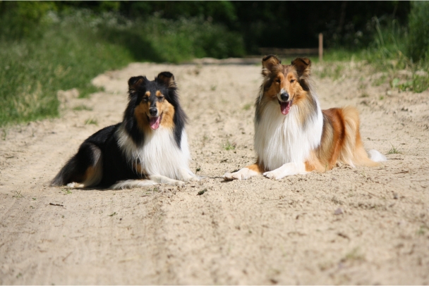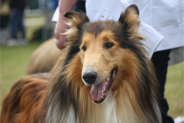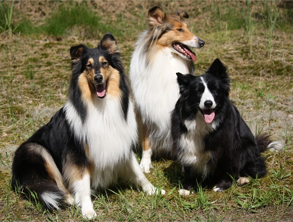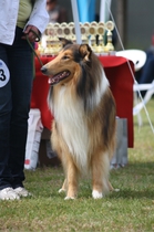 Am Ausstellungstag hatten wir dann viel Zeit, bis wir dran waren. Morgens gab es erstmal einen schönen Waldspaziergang, dann nochmal eine kleine Strecke mit Sabine und Wolke zusammen, wobei wir Piri mitgenommen haben, und auch ein erstes Treffen mit Schwesterchen Xenia und ihrem Frauchen hatten. Anschließend wurden meine Hunde an einem schattigen Plätzchen angebunden und ich konnte mit Fotoapparat bewaffnet noch in Ruhe Rüden gucken. Besonders angetan hatten es mir die Collies vom Sonnenpferd und die beiden Umber Söhne Clyde vom schwarzen Feuer und Ducan vom Hahneflüßchen.