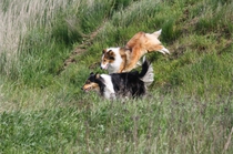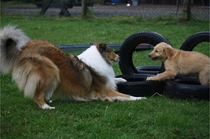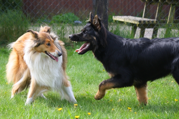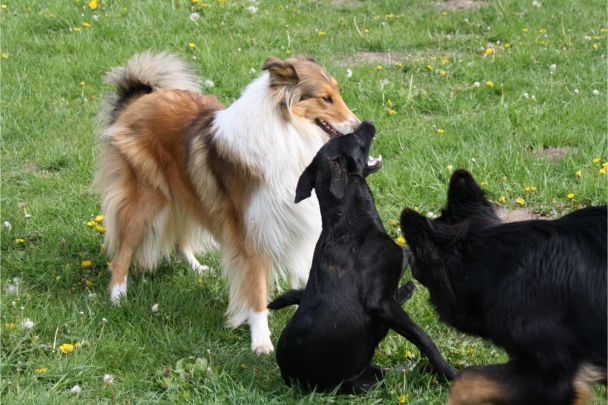 Video: Ronja beim Spielen mit den Junghunden Spike und Nora. Nach dem Spielen gab es dann eine kurze Verschnaufpause und anschließend Training in der Junghundgruppe.