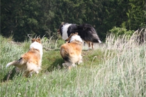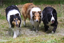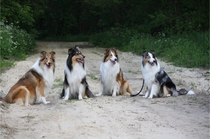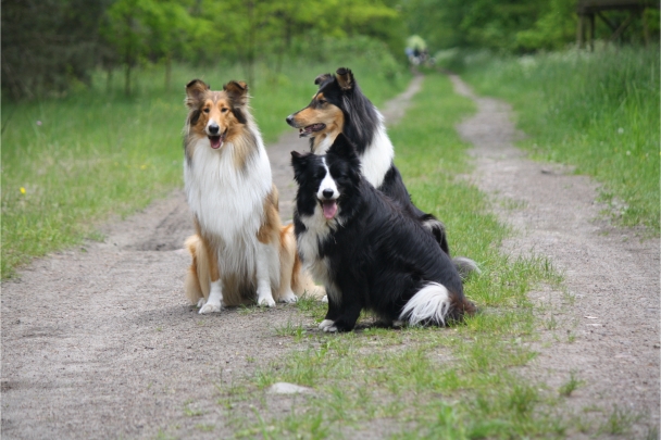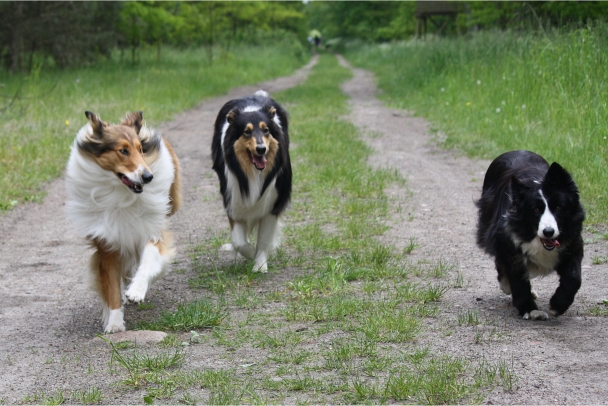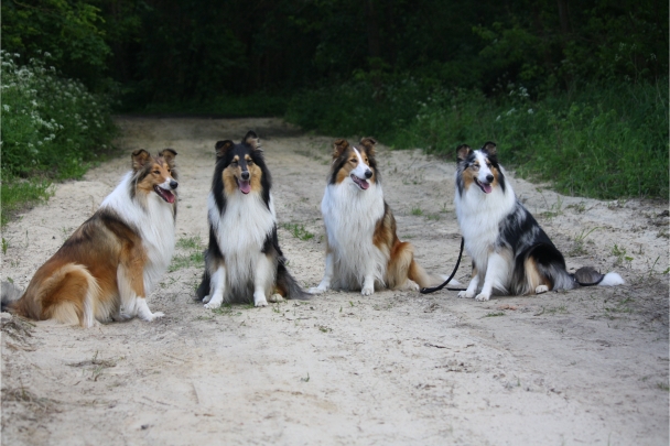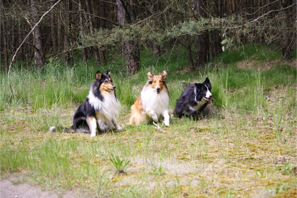 Nach dem Vorführen mußte ich erst noch eine leckere Soljanka verspeisen und anschließend haben wir Piri zu einem Waldspaziergang mitgenommen. Die Schwestern haben ab und zu etwas gespielt, und wir haben viele Gruppenfoto Sessions gemacht. Mit vielen Leckerlies und gemeinsamen Sprintstarts zur Belohnung hatten die Hundis auch daran Spaß. Dann tauchten plötzlich Xenia, Wolke und ihre Frauchens auf und, nach einem Gruppenfoto der Prignitzer Flur Collies, sind wir gemeinsam zurück gegangen.