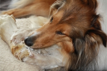 Das folgende Wochenende hatte ich auf der CACIB Neumünster einen zusätzlichen Liegeplatz für Annouk gekauft. Seitdem gibt es dieses Schauspiel leider kaum noch, denn Annouk läßt ihren leeren Kong nun auf dem anderen Platz liegen.