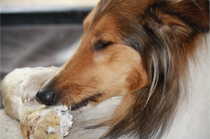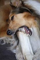 Kong ist eigentlich leer, nur manchmal sind noch ein paar Apfelstücke drin . Aber es ist Annouks, deshalb muß Ronja ihn haben ;-)