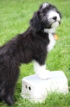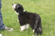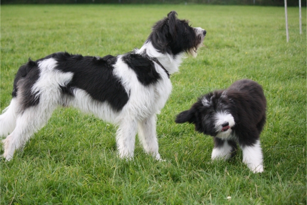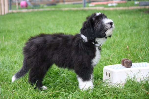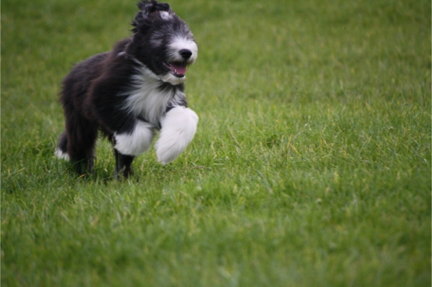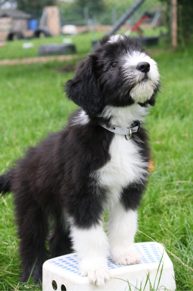 Und in seinem zarten Alter von 11-12 Wochen auch noch in schwarzweiß: Klein-Beardie Petter. Er ist mit viel Lebensfreude und guter Laune im August bei Sandra eingezogen. Petter kommt von Västerskog Beardies. Entzückend, der kleine Mann.