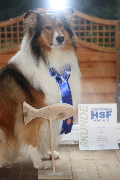 Bei den Hundesportfreunden Kiel habe ich mit Ronja den ersten Start im Rally Obedience gewagt. Das Wetter war extrem wechselhaft, und wir hatten das Glück bei Sonnenschein zu starten. Die Vorbereitung vor dem Start paßte, Ronja war gut drauf, und ich habe den Lauf ohne Patzer hinbekommen. Ergebnis: volle 100 Punkte.