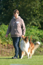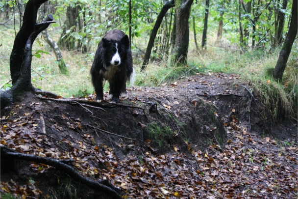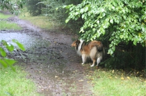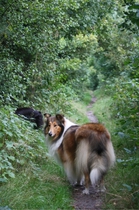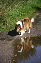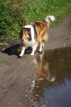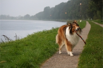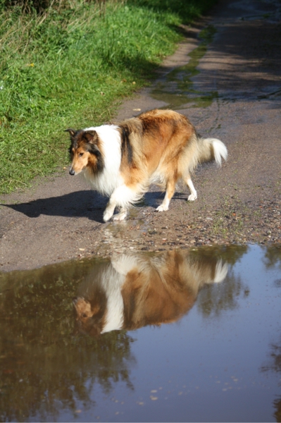 Die Woche nach unserem ersten ROT waren wir bei unserer Tierheilpraktikerin, und haben erfahren, das Ronja nicht nur scheinträchtig war, sondern auch eine beginnende Gebärmutterentzündung hatte. Deshalb so müde. Nachdem sie einige Tage außer kurzen Gassirunden wirklich nur geschlafen hatte, war sie wieder recht munter, aber noch in Schonung. Also haben wir etwas ruhiges Tricktraining gemacht. In wenigen Tagen hatte Ronja Pfote auf Fuß gelernt, wir haben den Trick "Home" angefangen (siehe Trick Trainingsvideos), und an den Wochenenden bei angenehmem Wetter ruhige Spaziergänge mit Foto Posing gemacht.