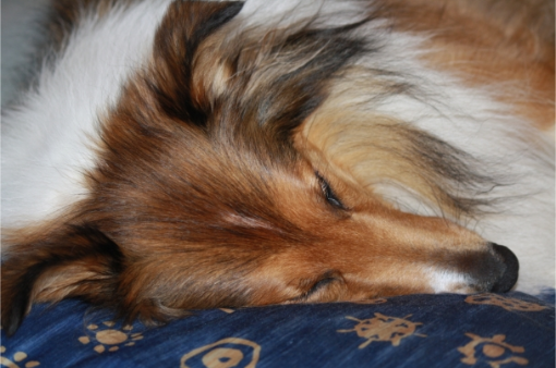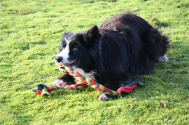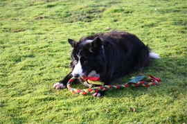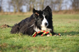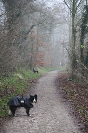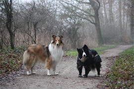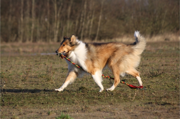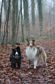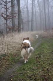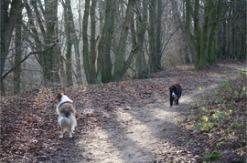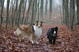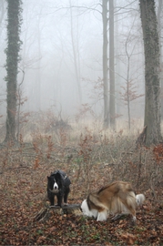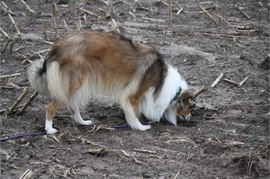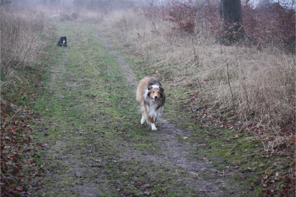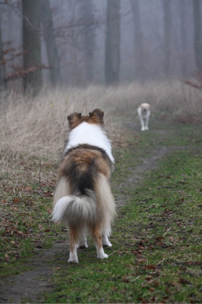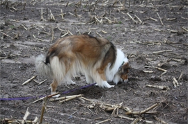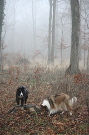 Nach dem gemeinsamen Waldspaziergang gab es für Ronja noch eine Einzelrunde mit Fährte, während Annouk zu Hause gemütlich einen Kong leer gefuttert, und dann geschlafen hat.