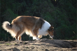Nach Weihnachten ist mir leider aufgefallen, das Ronja nun vor Motorsägen, auch noch in ziemlicher Entfernung große Angst hat (Motorsägen an sich waren vorher völlig unproblematisch, nur große fallende oder geworfene Dinge sind mir schon öfters aufgefallen).