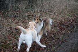 Donnerstag Abend war ich mit Ronja bei Katha zum Longieren XXL. Mit Kegeln trainieren wir ja grad für Obedience anderes, und Longieren habe ich auch nicht vor, aber es war eine großartige Möglichkeit mit Ronja Sprungtraining zu machen, und mal wieder in einer Reithalle zu trainieren. Es hat unheimlich viel Spaß gemacht. Und im Anschluß konnte Ronja auch noch mit einem netten Hund spielen. Sieht aus, als ob sie etwas verliebt war, so süß die Beiden.