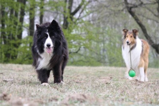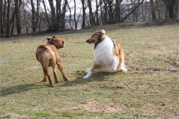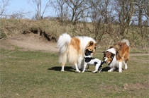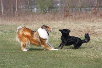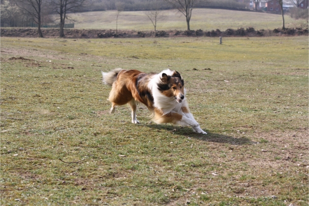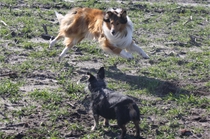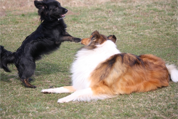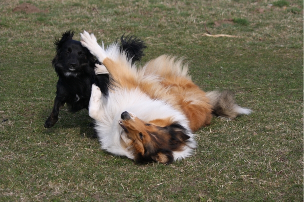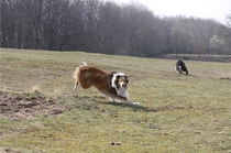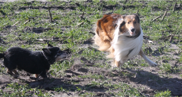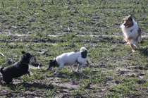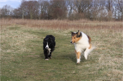 Video: ein klein wenig Obedience Training, und Ronja und Annouk beim Rennen über die große Wiese im Freilaufgebiet, 4. April 2015
