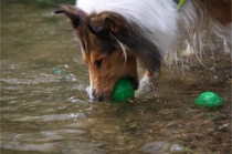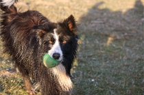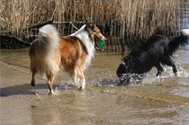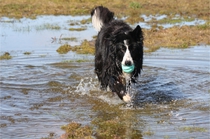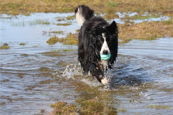Video: Baden am 4.4.2015. Nase unter Wasser, wenn der Ball wegflutscht, ist auch für Ronja kein Problem. Nur wenn es zu tief wird, dann muß der Border ran ;-)