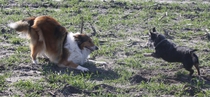 Video: Ronja zeigt Herding Instinct an einer Krähe, die im Hundefreilaufgebiet Leute um Leckerlies anbettelt und sich nicht so leicht verscheuchen läßt :-)