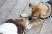 Fotos: die grünen Bälle flutschen im Wasser immer weg -> Nase unter Wasser. Von Ronjas Ball sind das die letzten Fotos. Hatte ihn zu weit raus geworfen, bevor 2 Schiffe gekommen sind, danach war er weg... Am Ende unserer Wasseraktion fing es dann an zu regnen.
