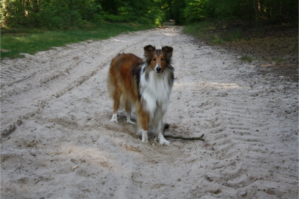 Annouk. Dieses provisorische "Fährtenschild" hat dann den 2. Platz der schönsten Schilder bekommen :-) Eigentlich hatte ich die Fährte für Ronja begonnen, aber dann kamen mir Ameisen in die Quere, und ich habe spontan umdisponiert und halt irgendwas Markantes an den Abgang gelegt. Annouk haben auch Leckerlies mit Ameise on top geschmeckt.