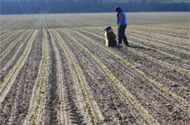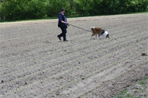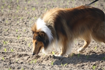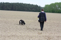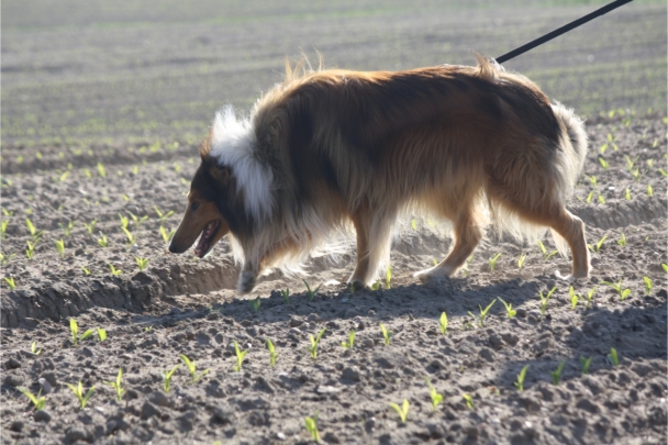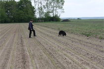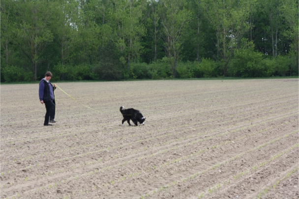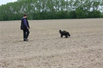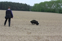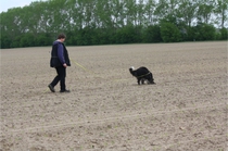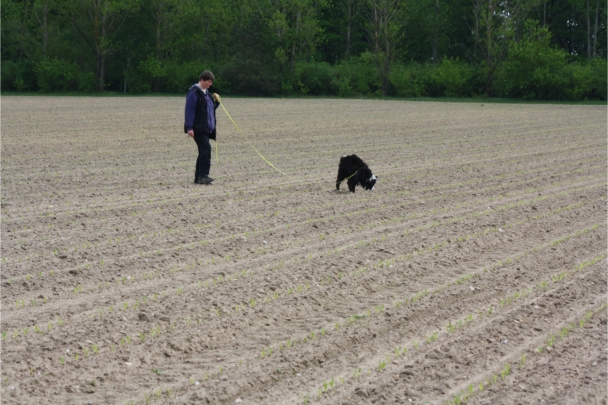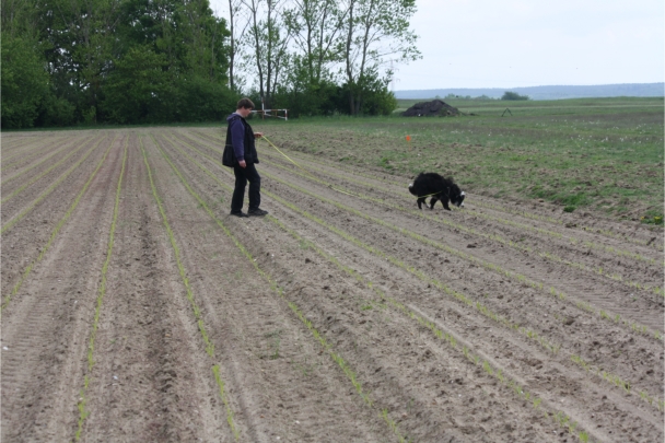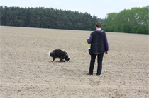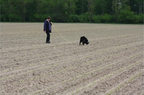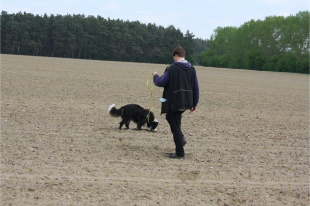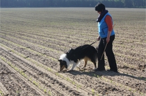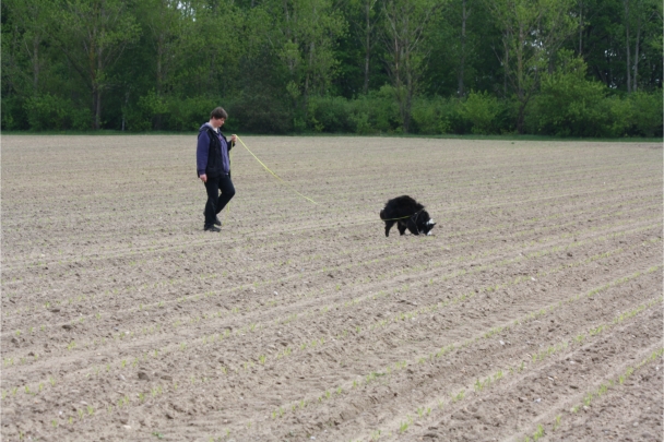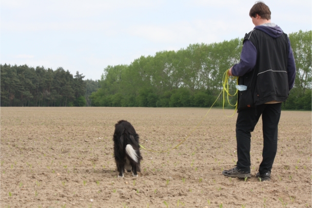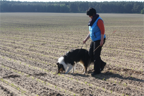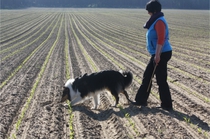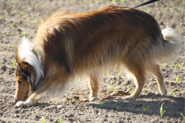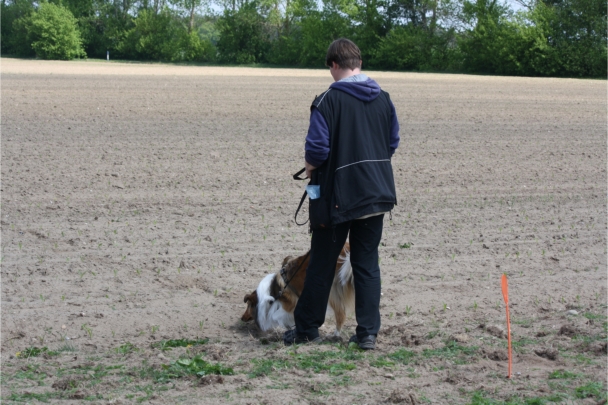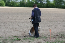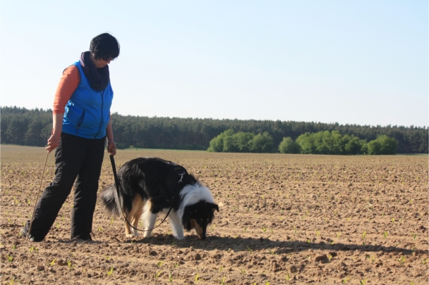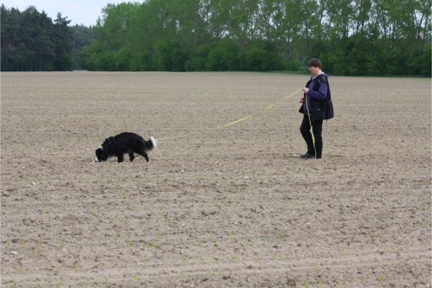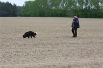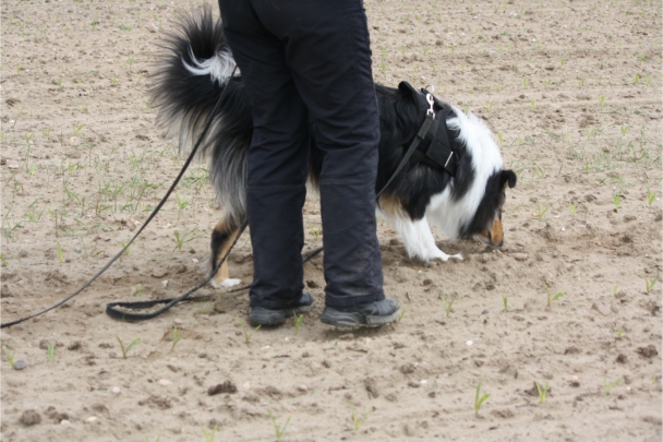 Video: Ronja beim Absuchen der zweiten Fährte ohne Futterstücke, nur mit Döschen und Gegenständen. Am Anfang hatte ich leider dafür zu schwer blöd in den Trekkerspuren gelegt.